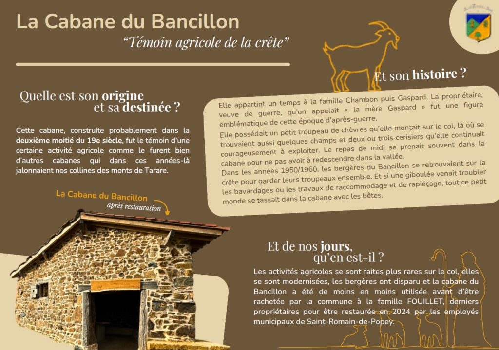 Une pancarte retraçant l’histoire de la cabane du Bancillon qui sera fixée sur le mur, à l’entrée.